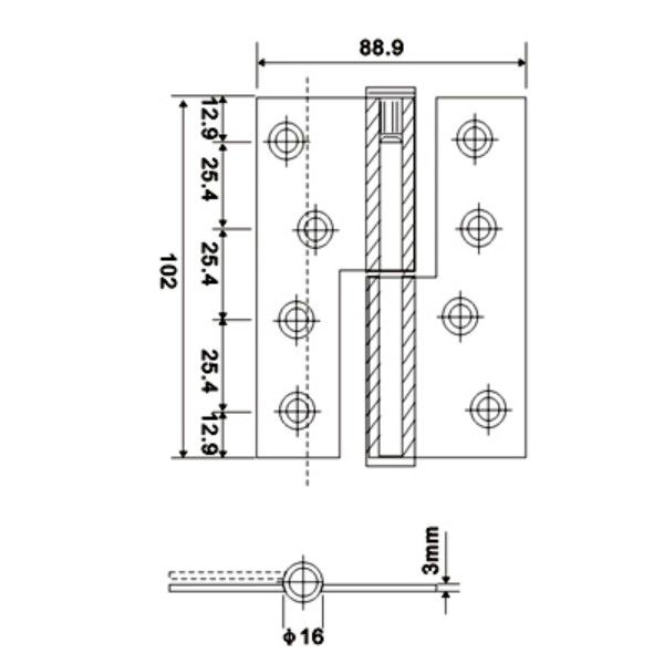 Bürstete Edelstahltürscharniere sind langlebige Hardware aus hochwertigem Edelstahl mit einer gebürsteten Oberfläche. Sie messen 102mm x 88,9mm, sind 3mm dick und haben einen Schaftdurchmesser von 16mm. Beide Scharnierflügel verfügen über gleichmäßig beabstandete Schraubenlöcher. Das einzigartige asymmetrische Ausschnittsdesign sorgt für einen gleichmäßigen Spalt bei der Installation auf Holz-, Metall- oder anderen kundenspezifischen Türen und verbessert die allgemeine strukturelle Stabilität und Ästhetik.